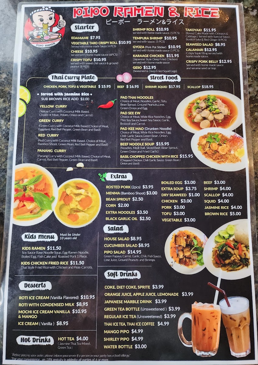 Whether you're in the mood for ramen, rice bowls, street food, or Thai curries, Pipo Ramen & Rice delivers a flavorful and satisfying dining experience.